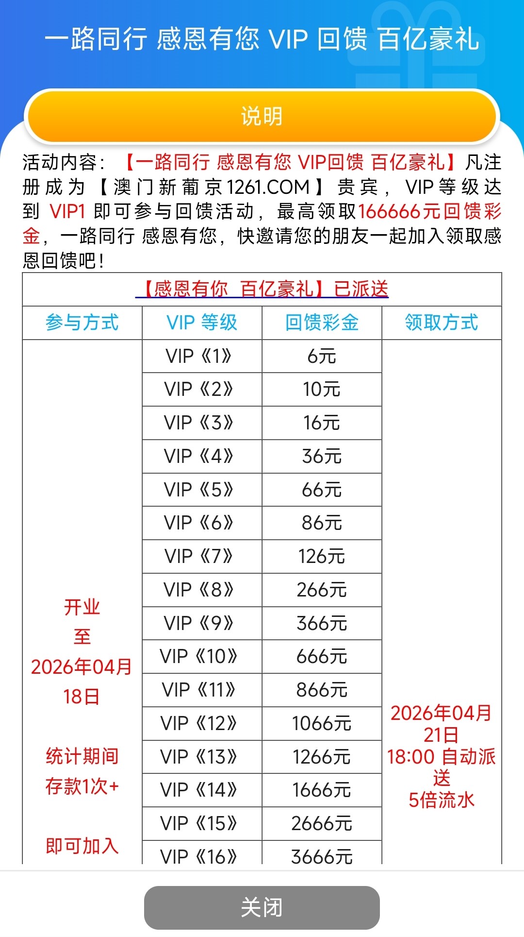 有VIP等级可以登入上查看是否收到彩金,5倍流水