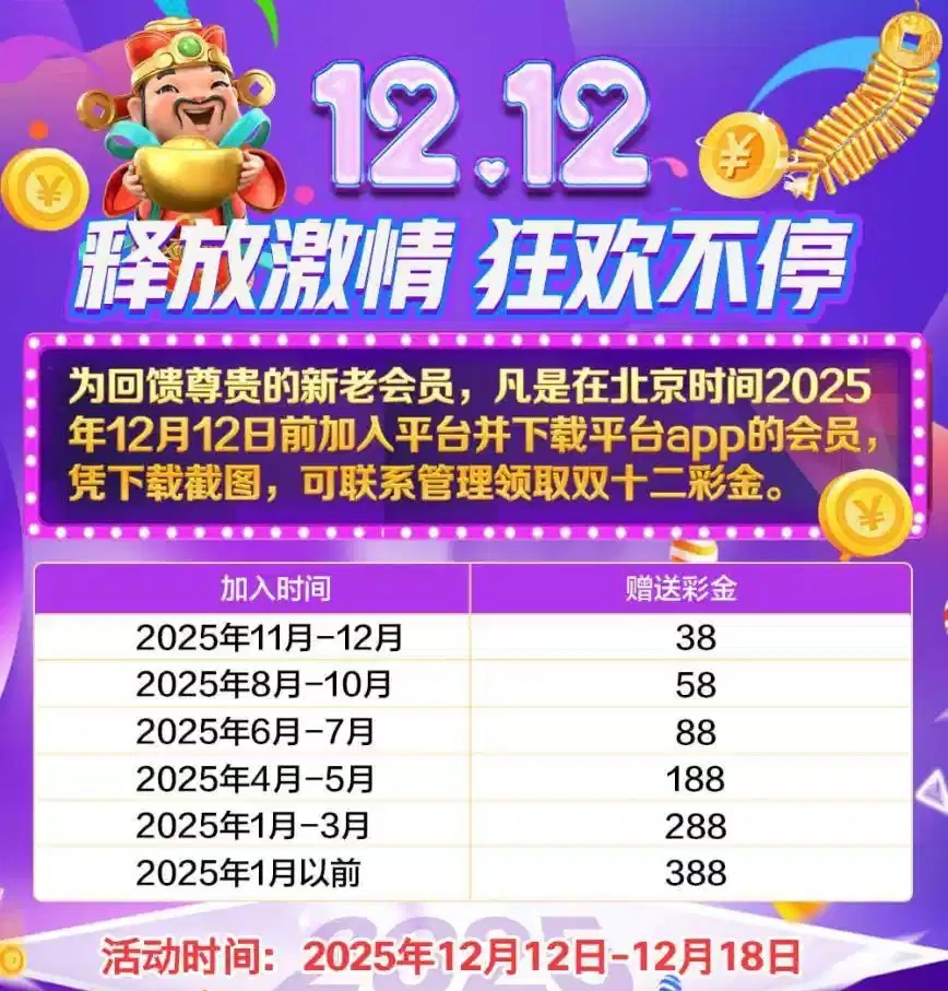 注册时间在12月之前有充值过100以上联系聊天室管理领取彩金